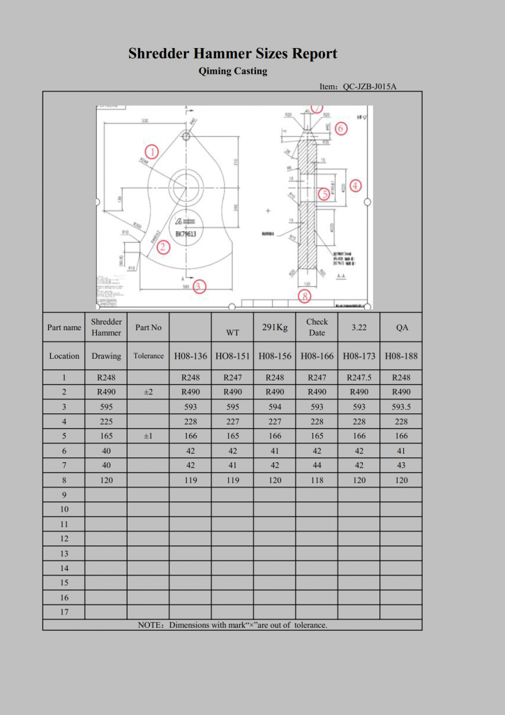 Qiming Casting supplies complete quality assurance reports for customers. Those quality assurance reports include:
